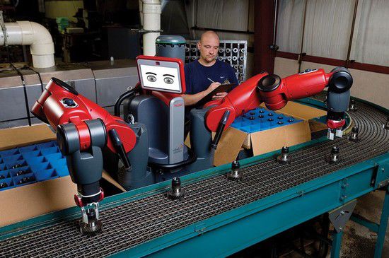 Rethink Robotics设计的Baxter机器人拥有两只机械臂和个动态表情面部(屏幕)。该机器人可以通过被示范训练来学习执行各类任务:人类可以控制机器人的手臂,并指定系列动作,机器人会记住并重复,从而达到示范学习的目的。而头部的屏幕则会通过表情提示告知周围的人当前正在执行的任务,或者正遭遇的问题。