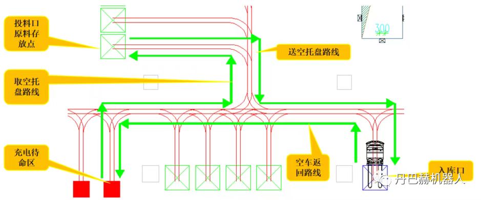 本项目为将原料从原料取料口送至生产线投料口,以及将投料口用完的空托盘送至入库口(50个/10条线)的物料运输自动导引运输车系统(AGVS),包括和叉车式自动导引运输车(AGV)、AGV调度系统、无线通讯系统等,目的是提高物流输送作业的智能化、稳定性,同时降低工人的劳动强度,实现真正的智能制造。